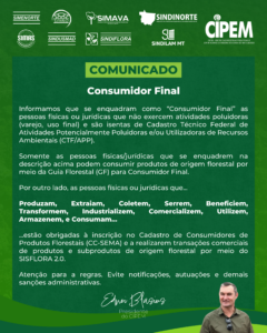 Somente as pessoas físicas/jurídicas que se enquadrem na descrição acima podem consumir produtos de origem florestal por meio da Guia Florestal (GF) para Consumidor Final.