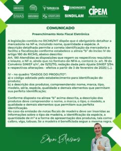 No caso da emissão de notas fiscais de madeira deve ser inseridas as informações sobre o tipo de madeira, a identificação da espécie, a quantidade de m³ e a forma de apresentação dos produtos, tais como: caibro, viga, tabuas. Se a madeira é beneficiada segue a mesma regra.