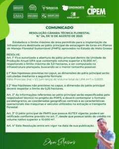 Considerando o período proibitivo de exploração florestal em Planos de Manejo Florestal Sustentável – PMFS no estado de Mato Grosso, em razão da sazonalidade das precipitações pluviométricas, conforme estabelecido na Resolução da Câmara Técnica Florestal n.º 10, de 13 de junho de 2017, e a consequente a necessidade de garantir infraestrutura adequada para o armazenamento de produtos florestais extraídos, para posterior transporte às indústrias de processamento;